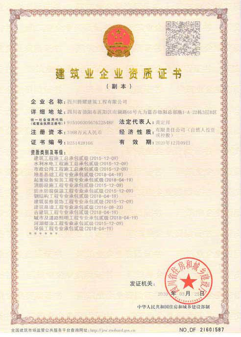 四川騰耀建筑工程有限公司  地址:四川省德陽市旌陽區南湖路66號九為藍谷德陽總部港1-A-22棟1層  電話:0838-2507855
